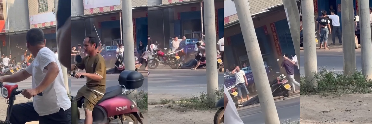 该文章由91吃瓜发布,转载请注明来源并附上原文链接: 精神小伙街头大乱斗,车锁链子各种甩鞭,一小伙被直接打趴在地,现场混乱引发路人围观 !