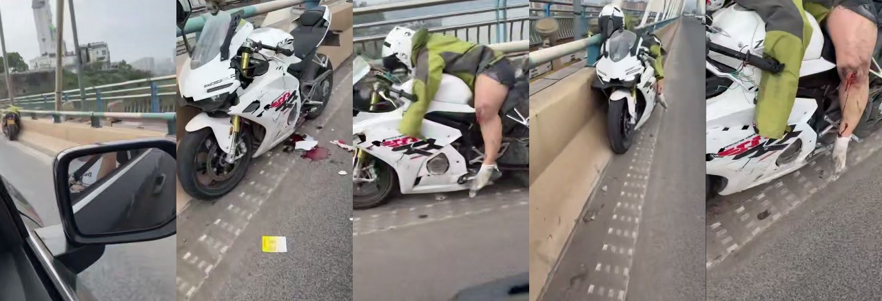 该文章由91吃瓜发布,转载请注明来源并附上原文链接: 太惨了!女骑士骑白摩托撞护栏飞出去,左腿膝盖直接撞烂血肉模糊,鲜血流一地,摩托严重变形,现场救援紧急