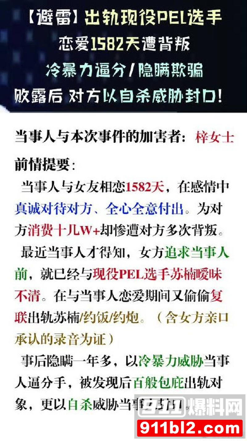和平精英圈昨晚直接炸了锅!前PEL职业选手“若败”连发多帖,痛诉自己和女友谈了1582天(约4年半),几乎花光所有积蓄,结果女友却暗中和现役北京JDG分部选手苏楠(几灰)保持不正当关系。若败直接甩出聊天截图、语音和视频等铁证,双方粉丝已经在各大平台吵翻天,苏楠目前还没回应,事件还在持续发酵中。