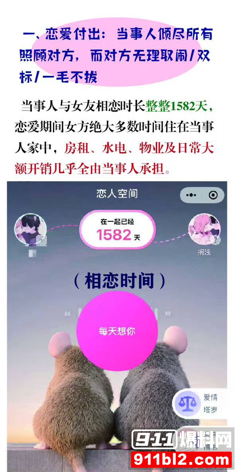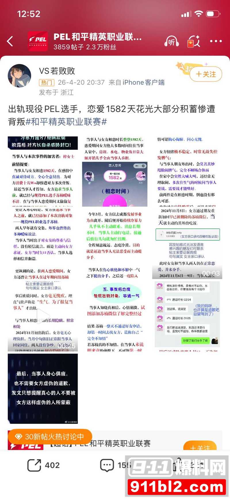 图片中若败连续发帖,详细讲述了自己和女友长达1582天的恋爱经历。他提到自己几乎倾尽积蓄,却没想到女友私下和别人有联系。图片展示了若败放出的实锤证据,包括和女友的聊天记录、语音片段以及相关视频截图。这些材料把时间、对话内容都记录得清清楚楚,瞬间点燃了整个事件的热度。