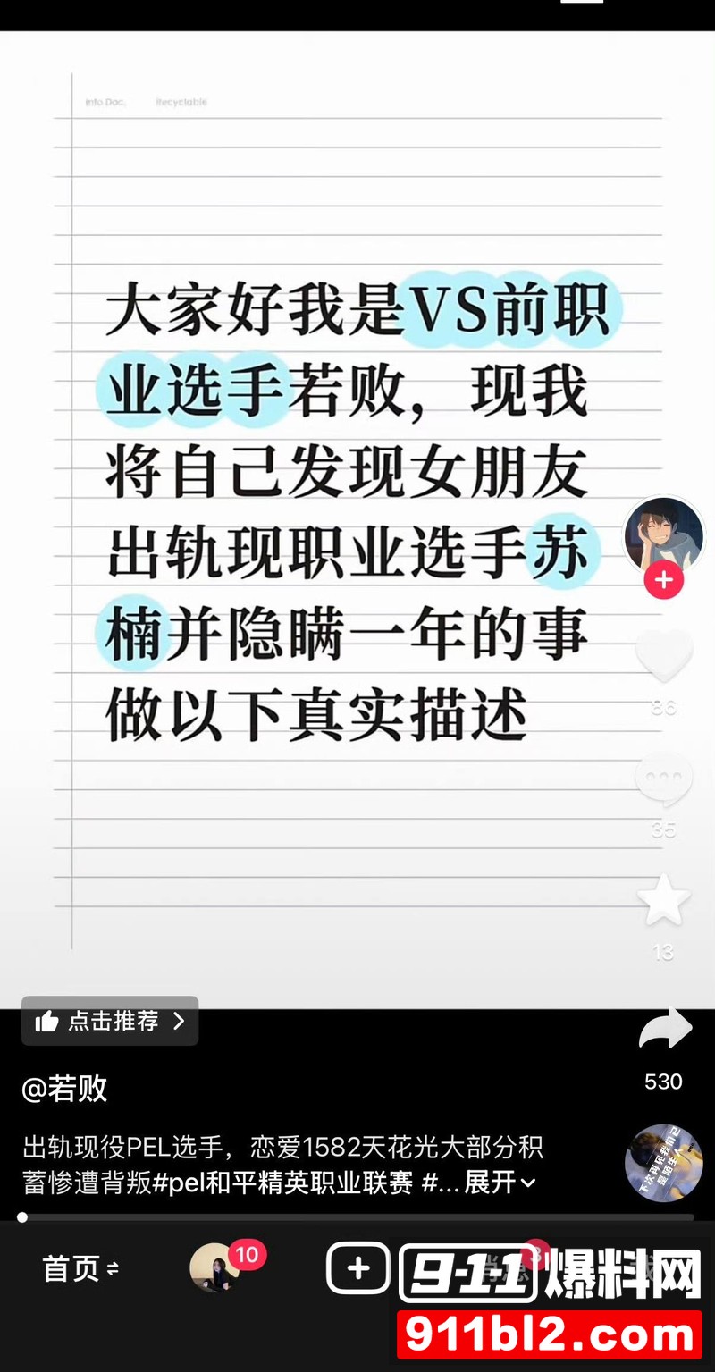 劈腿私密视频曝光 职业选手的操作太生猛
