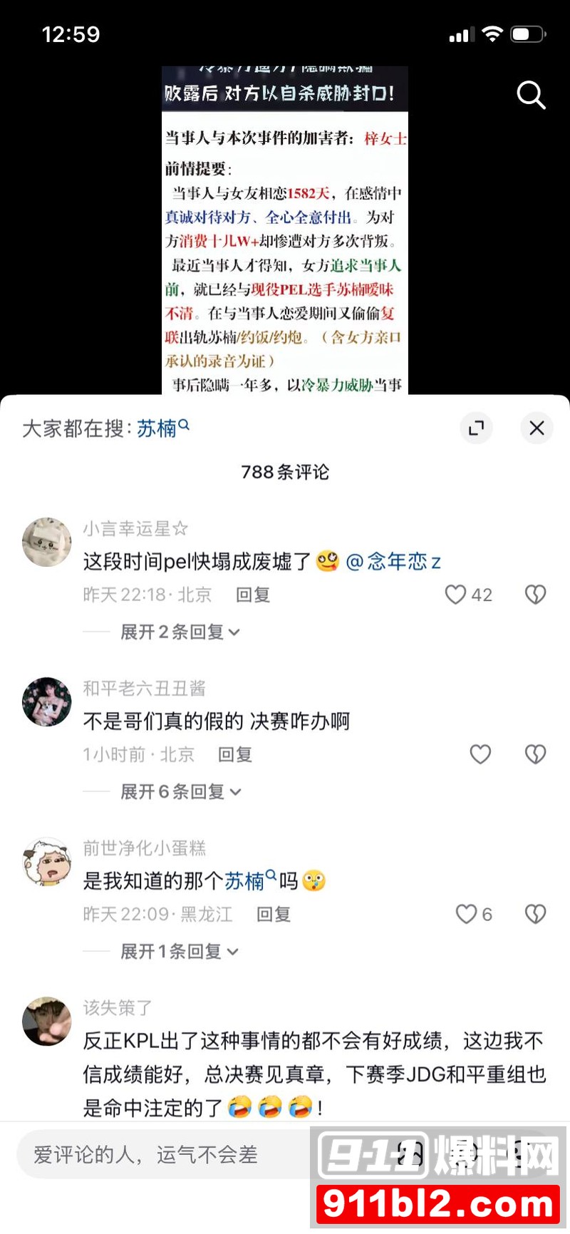JDG苏楠卷入劈腿风波 粉丝平台对线升级