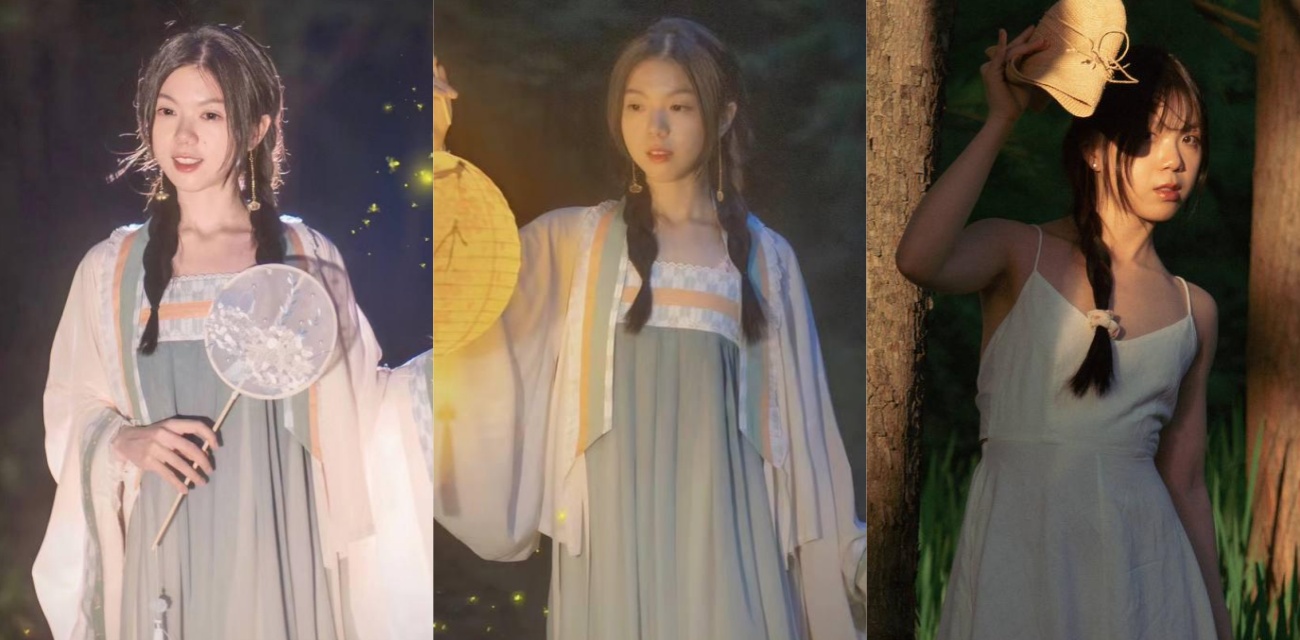 从图片来看,徐如懿穿汉服手持团扇站在夜间森林里,灵动可爱像仙女;另一张白裙靠树拿草帽,清纯文艺;还有一张夕阳下背对镜头回眸,气质温柔又迷人。微胖身材在轻薄衣裙下曲线柔美,辫子长发配上清澈眼神,反差感直接拉满。网友看完直呼:这谁顶得住啊,学校里高高在上的老师,私下居然这么会玩。