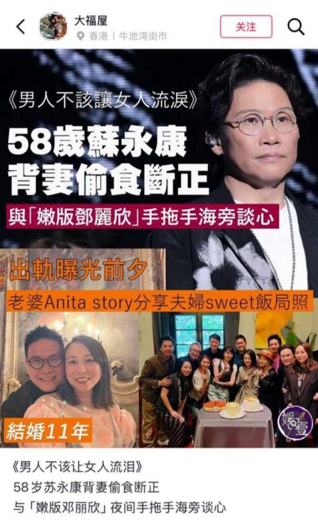 该文章由91吃瓜发布,转载请注明来源并附上原文链接: 香港情歌王子苏永康婚内出轨陌生女子深情王子太多情