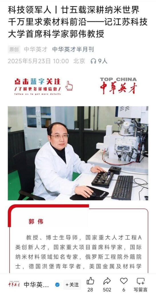 该文章由91吃瓜发布,转载请注明来源并附上原文链接: 首席教授高中学历江苏科技大学抽象大瓜郭伟学术造假
