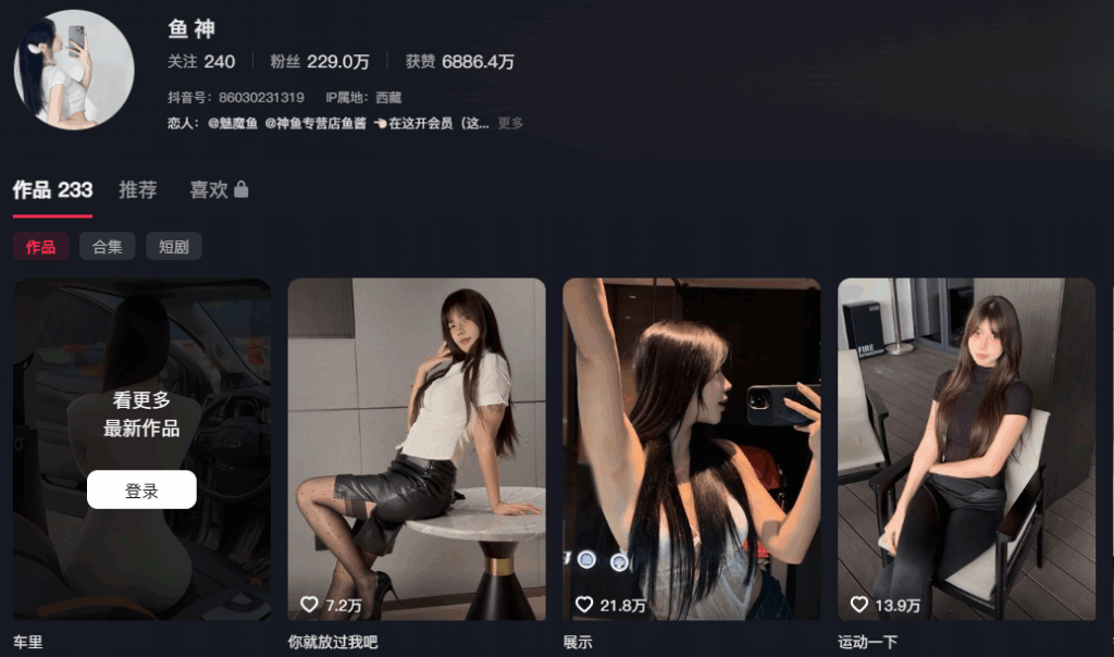 该文章由91吃瓜发布,转载请注明来源并附上原文链接: 230万粉丝抖音顶级纯欲网红鱼神最新定制视频流出