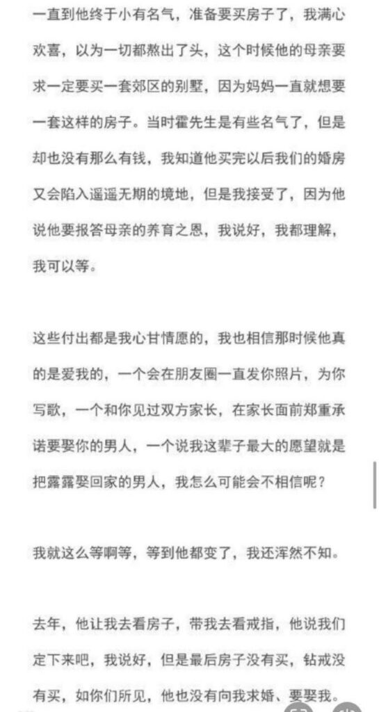 最近霍尊付出的消息,可谓是内娱第一重磅新闻,曾经的天才歌手终于割舍了过去,却不料引起前女友陈露不满,再度发文怒怼渣男交往期间出轨多次,陈露称交往九年期间为霍尊花费百万,不料长文一出,却被当场反杀,大量证据表明霍尊才是那个恋爱脑,而陈露的长文描述几乎全都为自导自演。