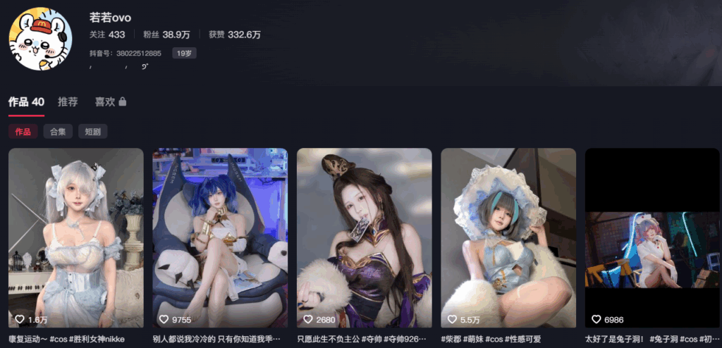 该文章由91吃瓜发布,转载请注明来源并附上原文链接: 38万粉丝抖音二次元萌妹coser若若ovo超绝露脸私拍福利
