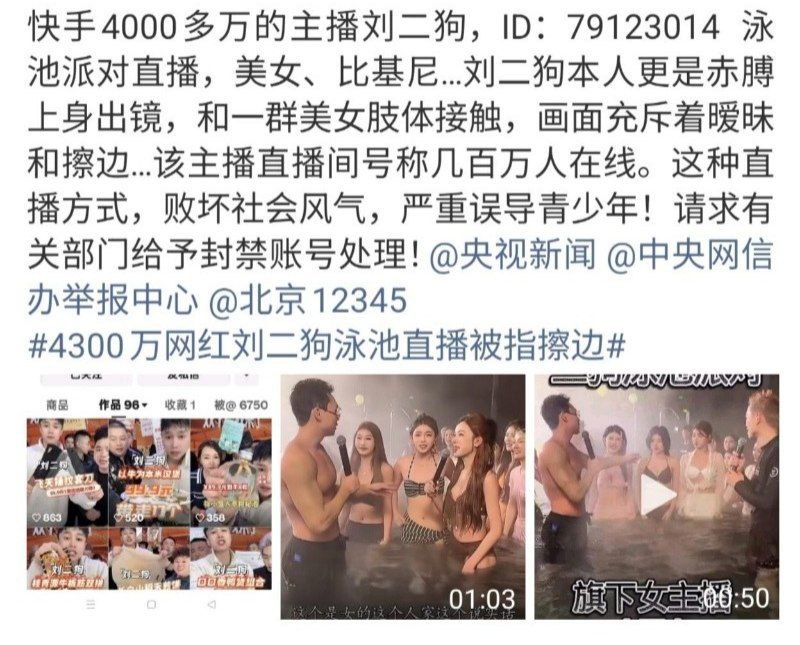 4400万粉丝快手网红刘二狗,泳池直播刷新尺度下限,比基尼美女镜头前搔首弄姿,而其徒弟毛弟,更是爆出猛料,每次刘二狗下播后,一定会会开启多人运动。