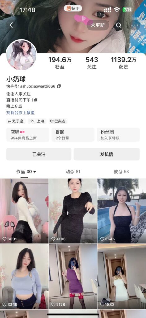 该文章由91吃瓜发布,转载请注明来源并附上原文链接: 200万粉丝快手擦边女网红小扔球宠粉福利小视频流出