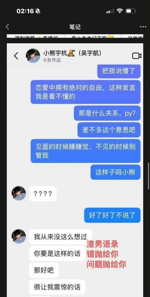 前女友爆料的记录,这位小鲜肉也是软板硬吃的典型代表了。更离谱的,吴宇航母亲甚至还包庇默许自己儿子的行为。