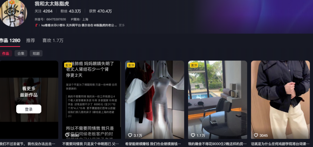 该文章由91吃瓜发布,转载请注明来源并附上原文链接: 抖音最强分享欲老婆打窝第一人我的太太陈脂虎大尺度视频流出