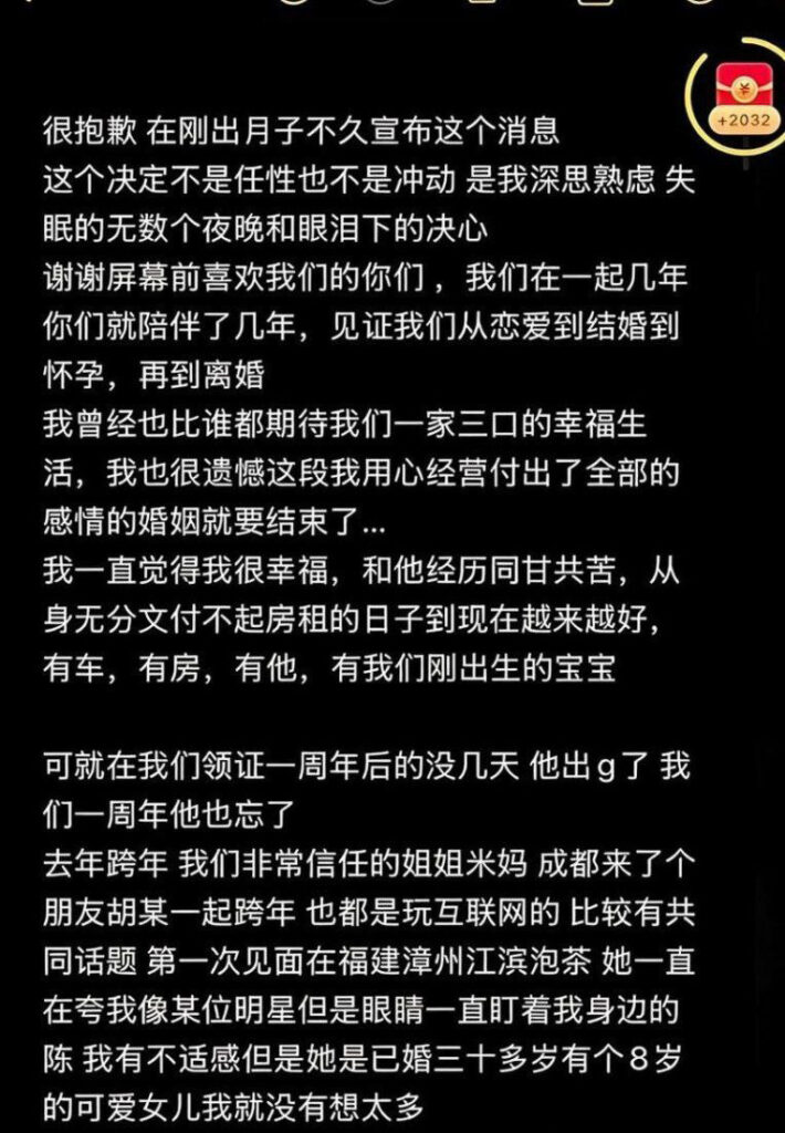 筱媛媛起初只觉得丈夫变冷只是季节错位,她开始认真自省,怀疑是自己不够好,像个勤勤恳恳的反派练习生。真相却更戏剧化:陈嘉惟与网红“潼潼妹妹”(原名潼潼妈妈)暗地走得很近。原来那对“夫妻档”不过是一层精致滤镜,背后是导演级别的演技与剪辑。信任被撕开,筱媛媛才发现自己只是被美化过的道具。
