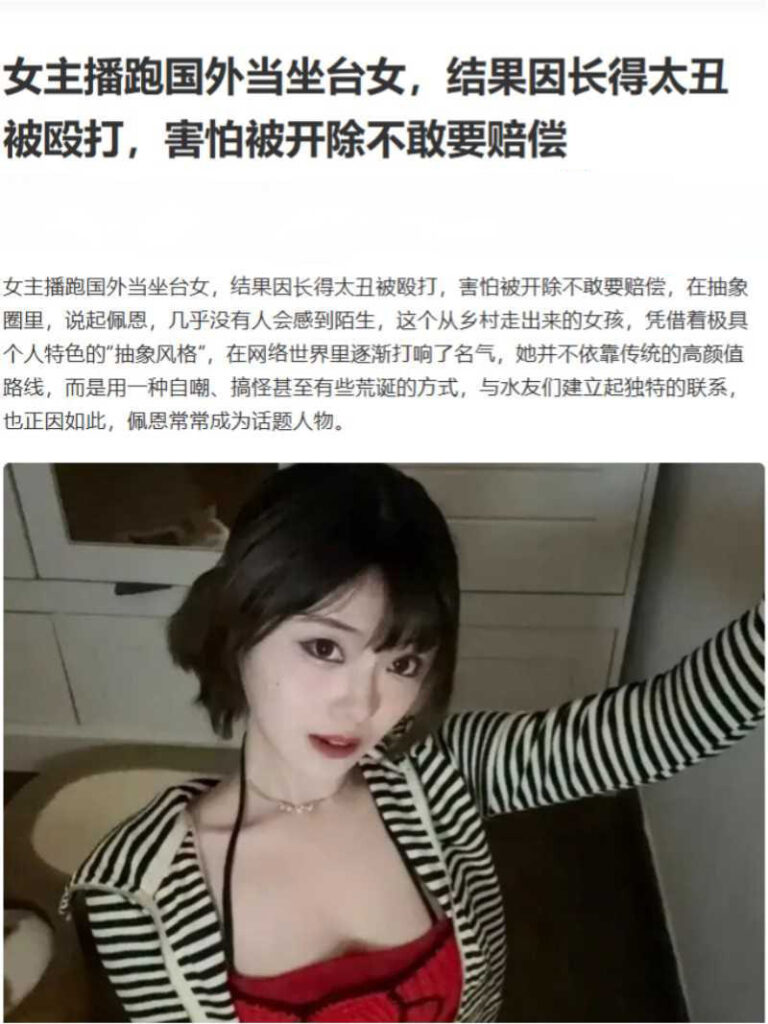 该文章由91吃瓜发布,转载请注明来源并附上原文链接: 斗鱼第一抽象女主播佩恩被挖日韩坐台经历太丑只能吃果盘