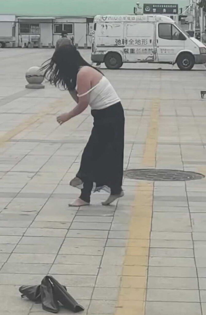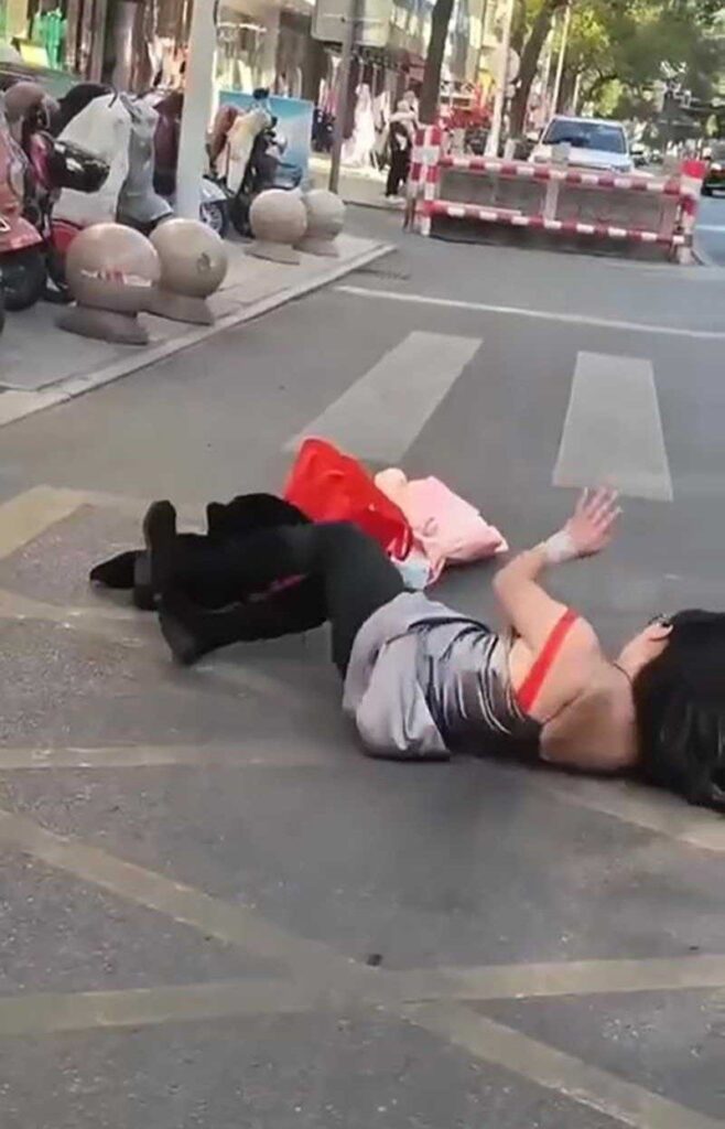 江苏泰兴大润发门前泰兴街头情绪崩溃失控撒泼打滚当众脱衣