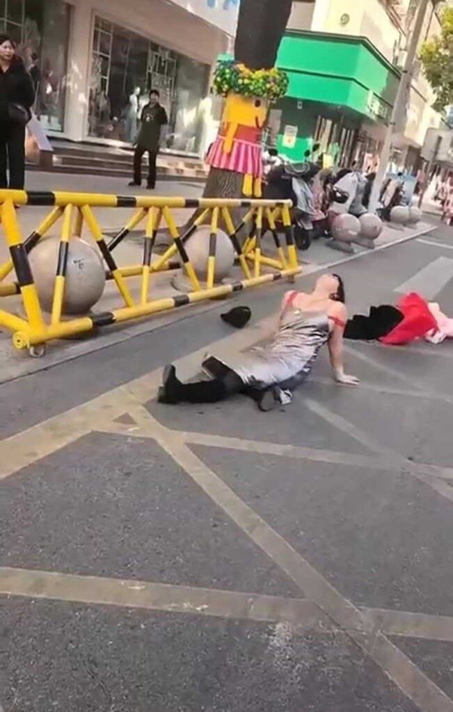 该文章由91吃瓜发布,转载请注明来源并附上原文链接: 江苏泰兴大润发门前泰兴街头情绪崩溃失控撒泼打滚当众脱衣