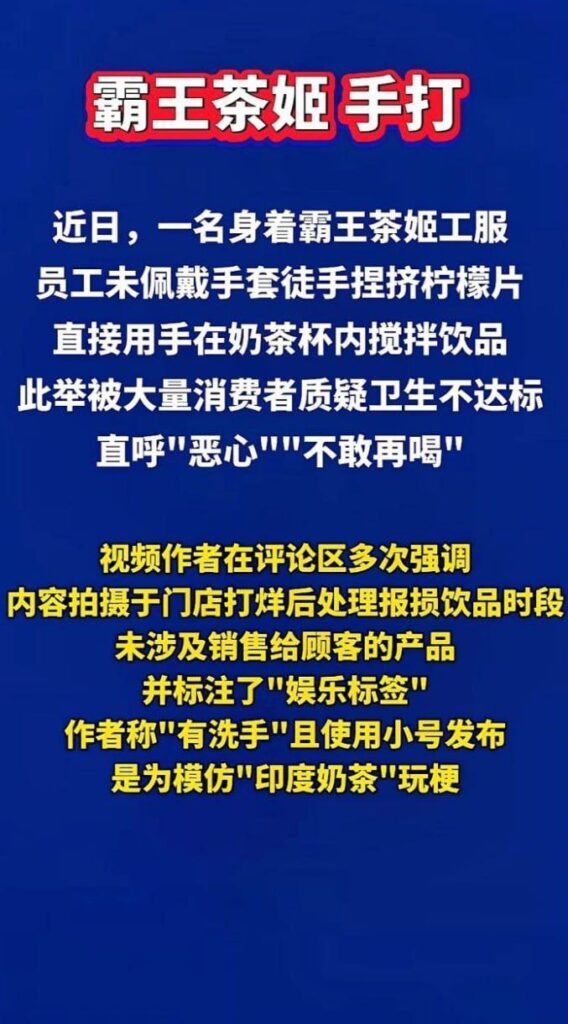 一手全菌Cao作特调手打柠檬茶,本是想着拍个段子调侃印度的卫生状况,想不到却成了史诗级反面教材,一条视频干掉公司股价,霸王茶姬这一波真的输麻了。