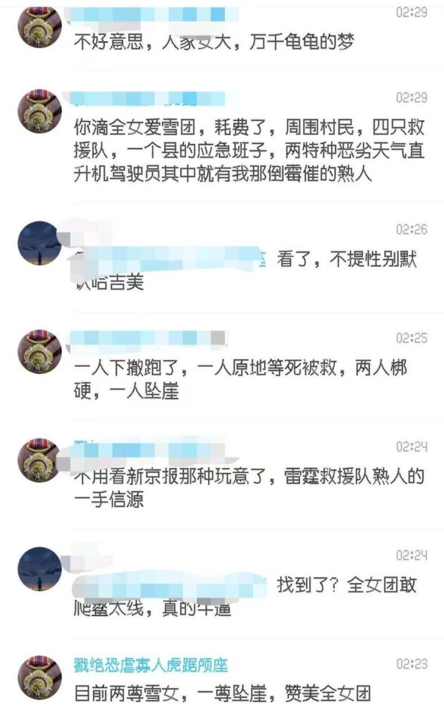 该文章由91吃瓜发布,转载请注明来源并附上原文链接: 5人全女登山队闯进鳌太线封禁路段失联事故