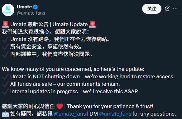 去年3月,umate网站在突发崩溃并发布紧急公告后便杳无音信,导致大量成人内容创作者和订阅用户遭受不同程度的经济损失。