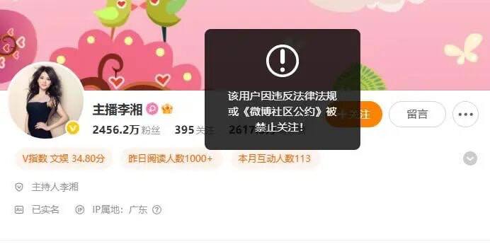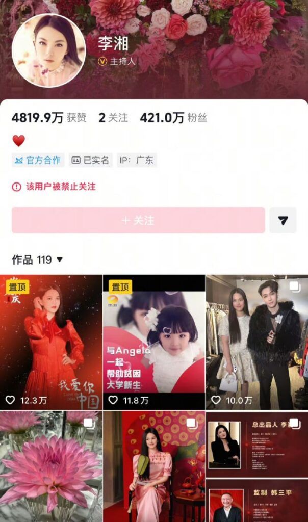该文章由91吃瓜发布,转载请注明来源并附上原文链接: 内地综艺一姐李湘被全网封禁多个平台账户禁言