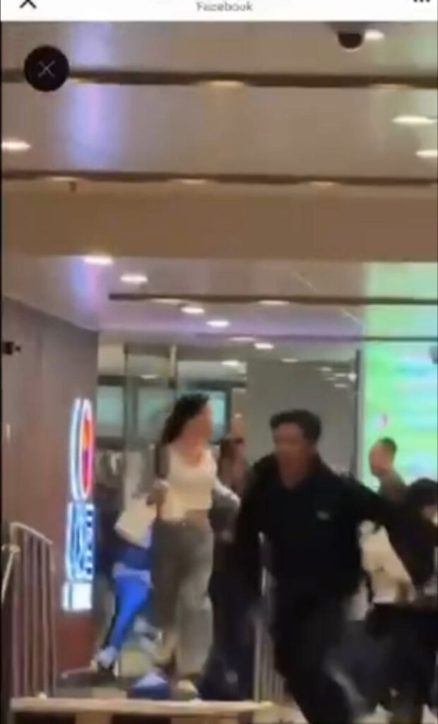 香港屯门市广场发生持刀挟持案:一名男子闯入DONKI厨房取刀并曾挟持一女,警方开枪击中,送院后抢救无效身亡。监控显示该男穿白衣、背包在屯顺街持刀徘徊并B近商场入口,顾客惊慌逃离。