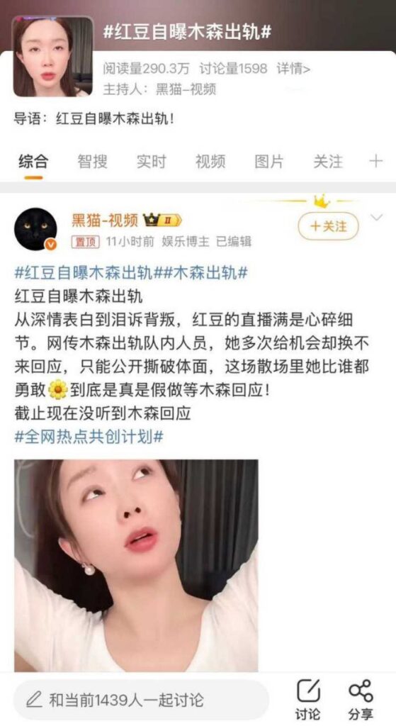 该文章由91吃瓜发布,转载请注明来源并附上原文链接: 1300万粉丝网红红豆直播上线手撕男友出轨女助理小媛