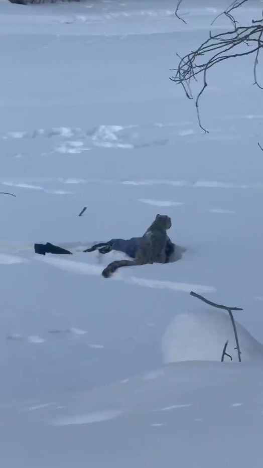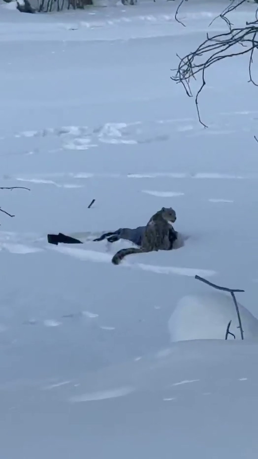 大雪封山导致食物获取困难,饿了一天的雪豹看到送上门的人类,还以为闯入了自助餐厅,一眼丁真,鉴定为毫无常识