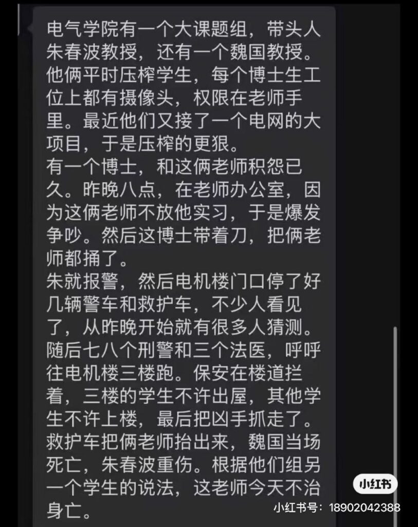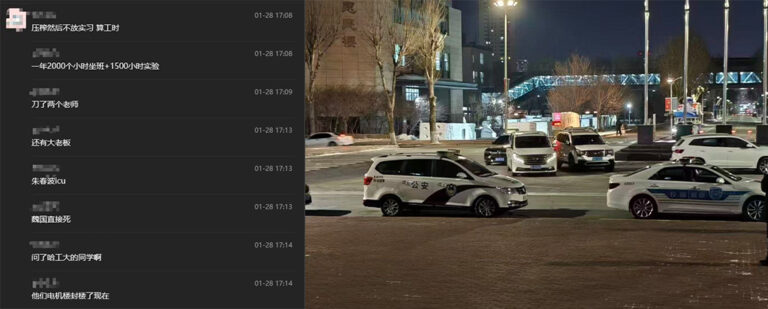 该文章由91吃瓜发布,转载请注明来源并附上原文链接: 网传哈工大突发恶性暴力事件电气学生持刀捅伤导师