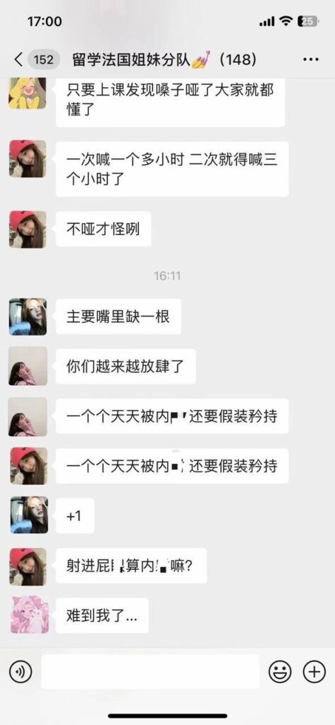 该文章由91吃瓜发布,转载请注明来源并附上原文链接: 留学圈被曝下限法国小分队群聊记录再度刷爆网络