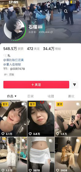该文章由91吃瓜发布,转载请注明来源并附上原文链接: 35万粉丝抖音擦边网红虚岁石榴清纯人设不在被曝生化母体