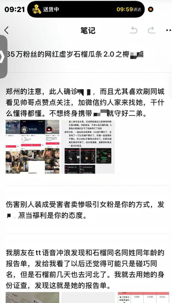 抖音35万粉丝擦边网红虚岁石榴人设塌房,靠着纯欲嫩妹人设疯狂收获大量粉丝,实则却是私生活混乱到螺旋升天的究极海王,被锤身患梅毒。