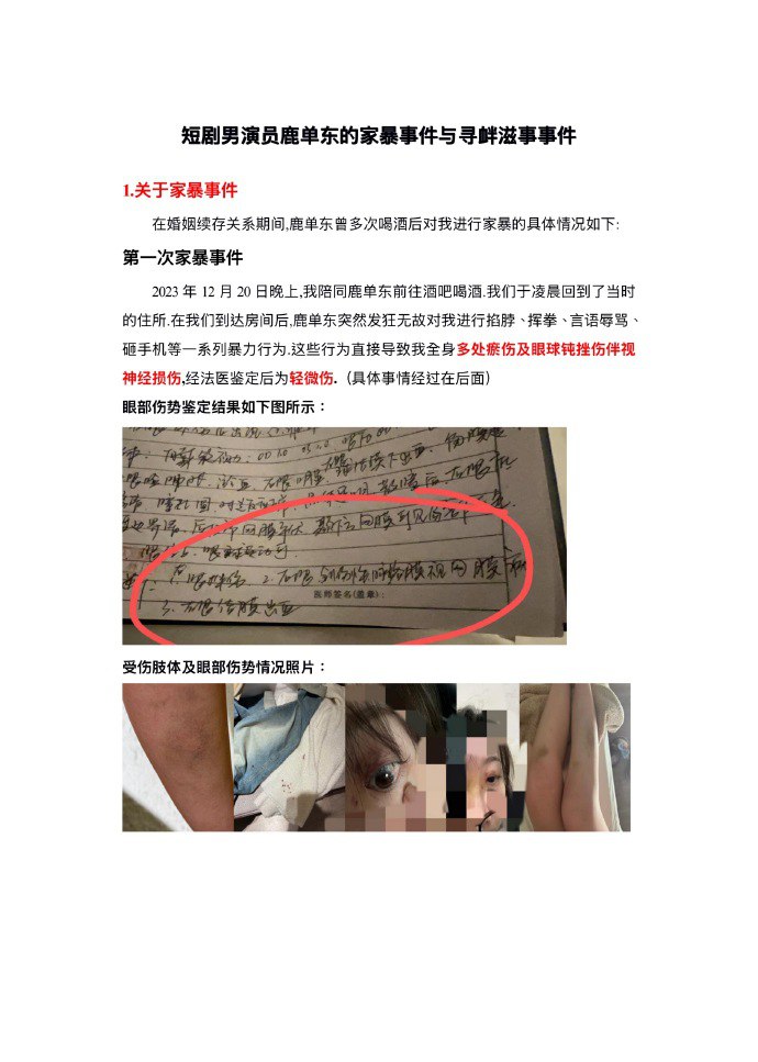 该文章由91吃瓜发布,转载请注明来源并附上原文链接: 62万粉丝抖音短剧男演员鹿单东被前妻爆料婚内出轨家暴