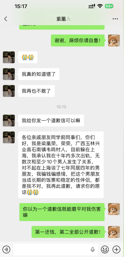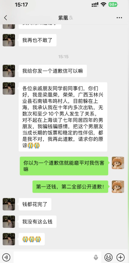 小红书员工梁凰荣七年恋爱劈腿10人哄骗男友捞金被抓当场
