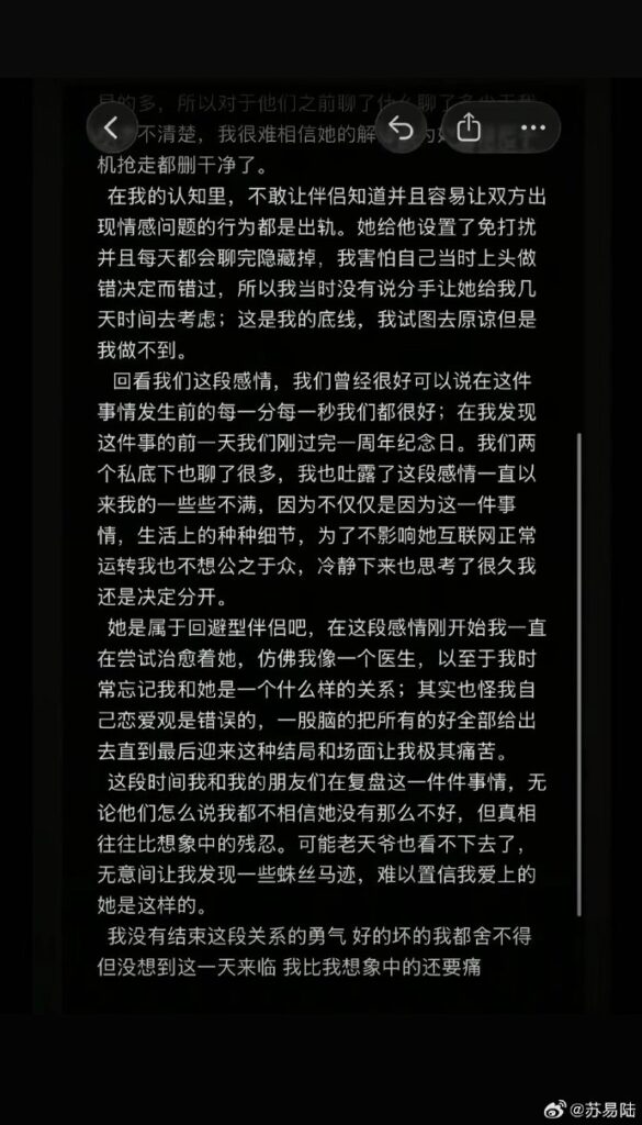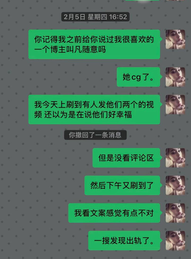 该文章由91吃瓜发布,转载请注明来源并附上原文链接: 54万粉丝抖音网红凡随意塌房男友7ce曝一年出轨三次