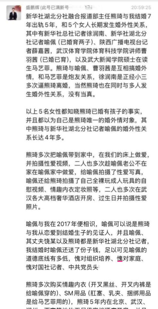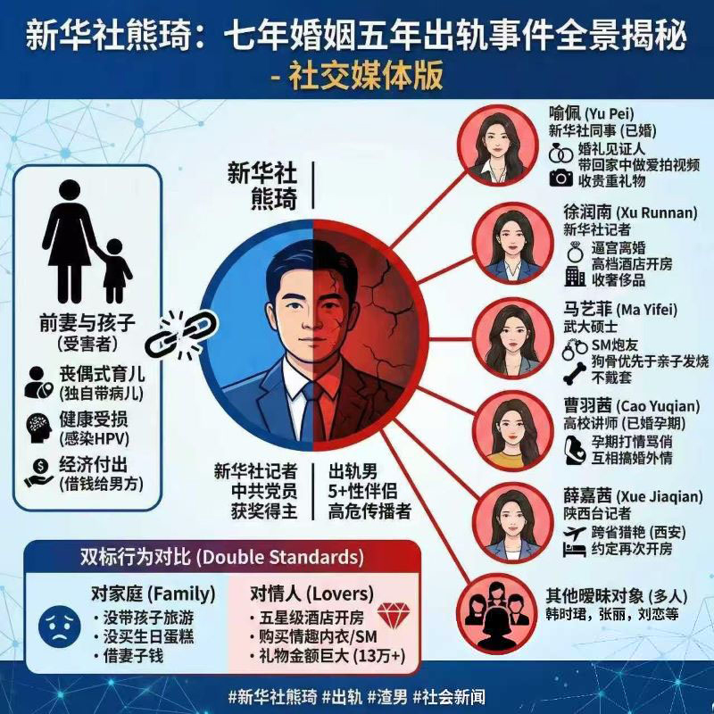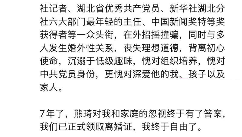 该文章由91吃瓜发布,转载请注明来源并附上原文链接: 新华社湖北分社记者熊琦7年婚姻5年出轨被妻子实锤