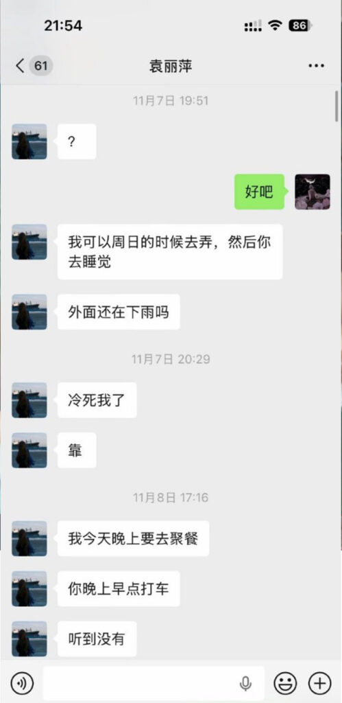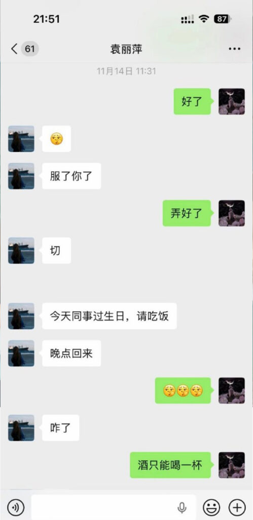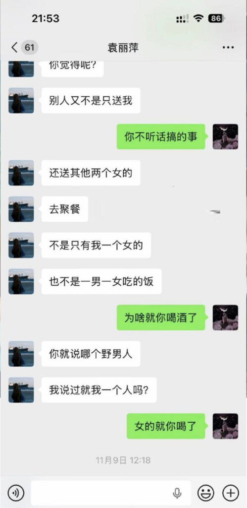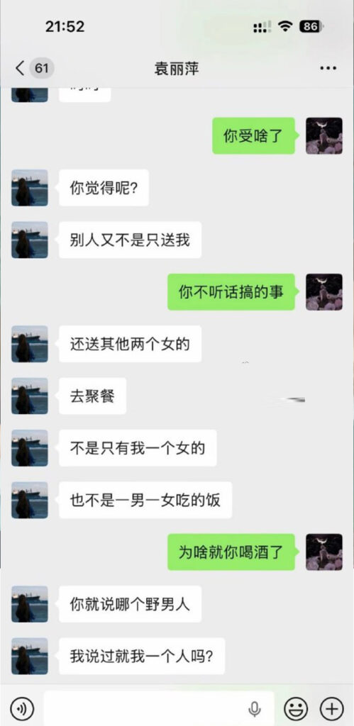 该文章由91吃瓜发布,转载请注明来源并附上原文链接: 苏州名硕南七工程部袁丽萍脚踏五只船被男友实锤海王