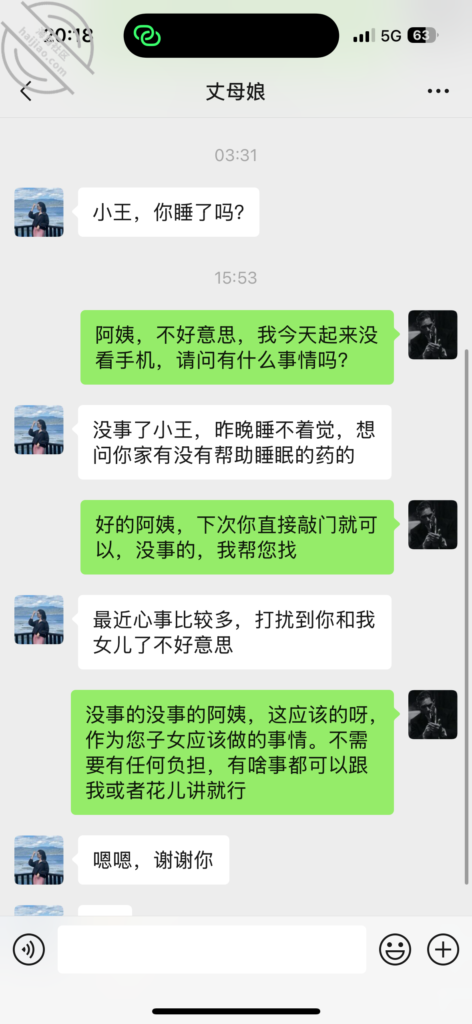 我就感觉额丈母娘最近举动很不正常,昨晚凌晨三点,突然给我发消息问我在吗?