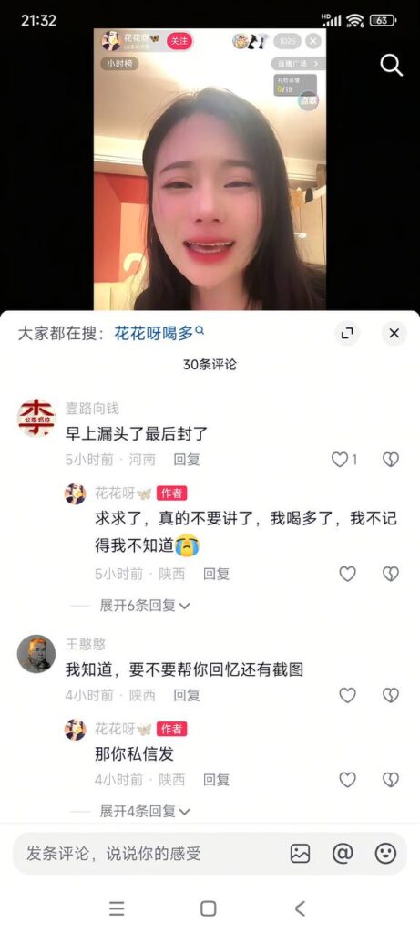 该文章由91吃瓜发布,转载请注明来源并附上原文链接: 抖音不知名主播花花呀醉酒直播脱衣封禁事件