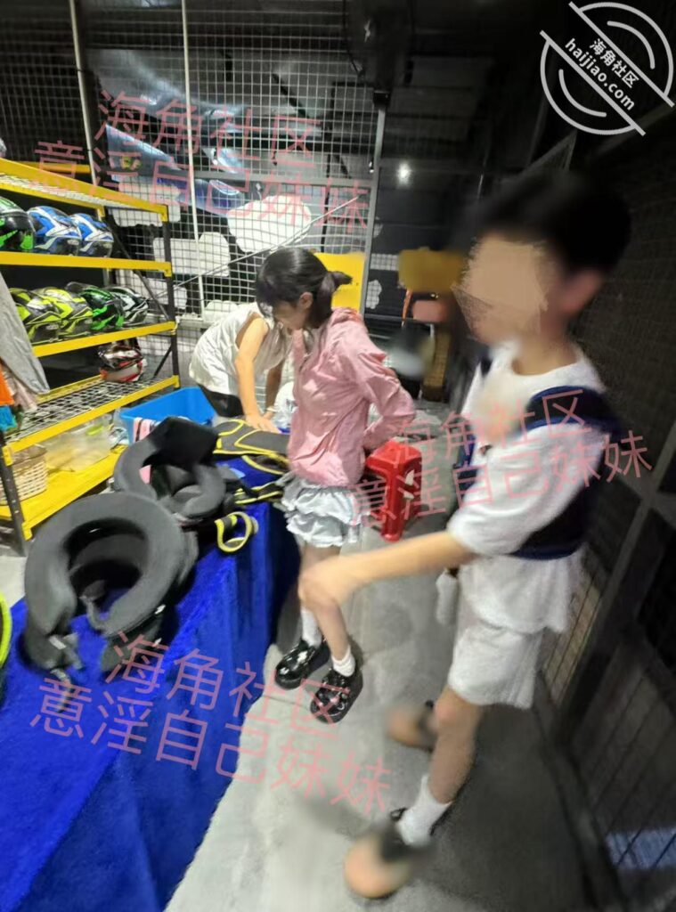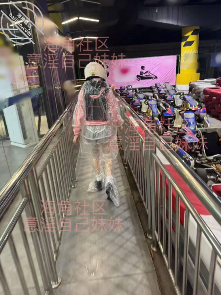 一进门就要把物品存上,然后有人给你穿装备,第一次,我俩都没经验,只能听人摆布啦,今天有小雨,天气比较凉爽,所以工作人员给我们一人一件雨衣,其实我是不想穿的,就是想享受这份独有的快乐,还别说,妹妹穿起雨衣的样子还挺可爱的,看来今天妹妹心情也是极美,走路的样子都跟平常不一样!今天就尽情好好玩耍吧,和妹妹同坐一台双人车