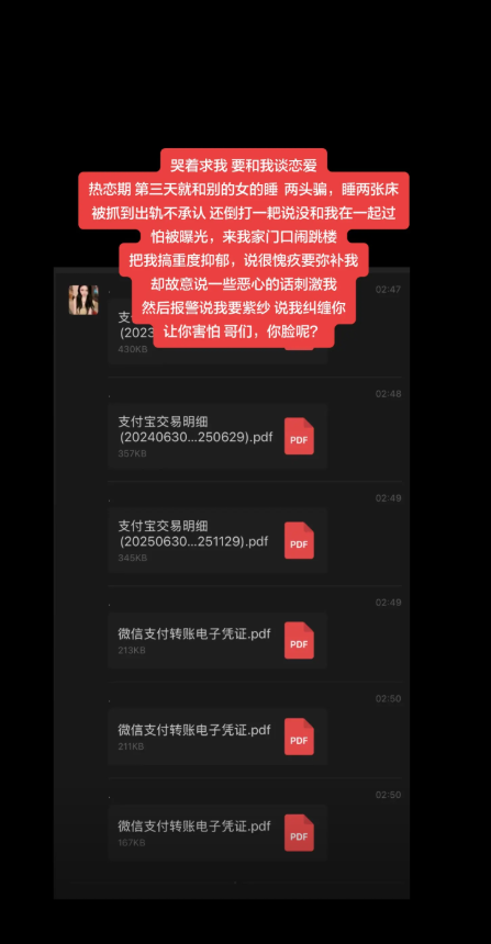 该文章由91吃瓜发布,转载请注明来源并附上原文链接: 短剧演员罗佳宁遭前女友实锤渣男软饭硬吃出轨女粉