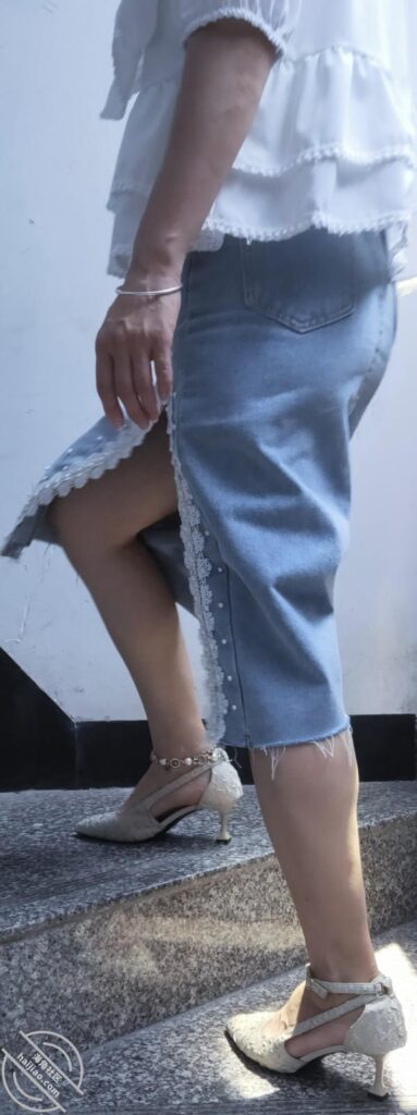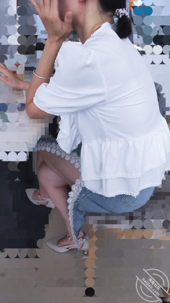 今天就路过小姨店铺,坐了一会儿,偷拍了几张,桌子底下拍裙底的时候紧张的心都要跳出来了,小姨今天穿的牛仔裙叉开的很高,好性感