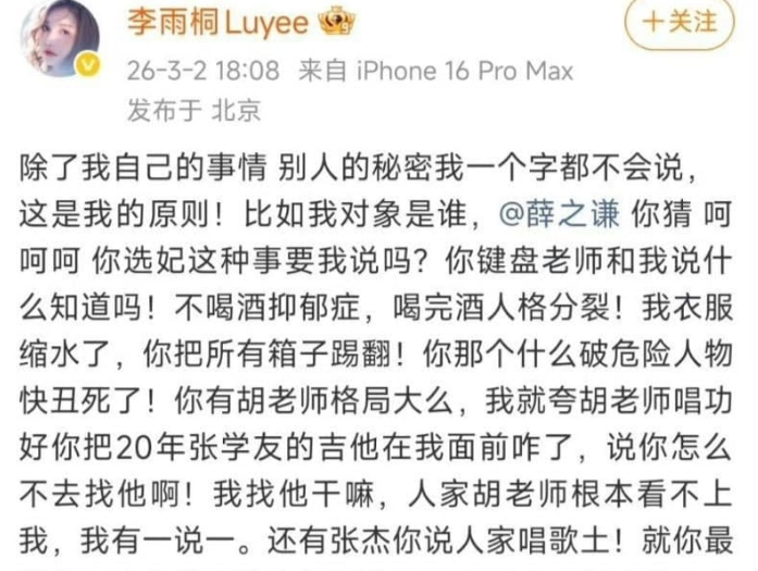 内娱纯情歌手薛之谦迎来史诗级核弹,前女友李雨桐突然实名开锤渣男伪造人设。长文实名怒怼薛之谦对其骗财骗色骗感情,强迫堕胎为了名利出轨。