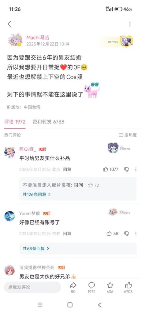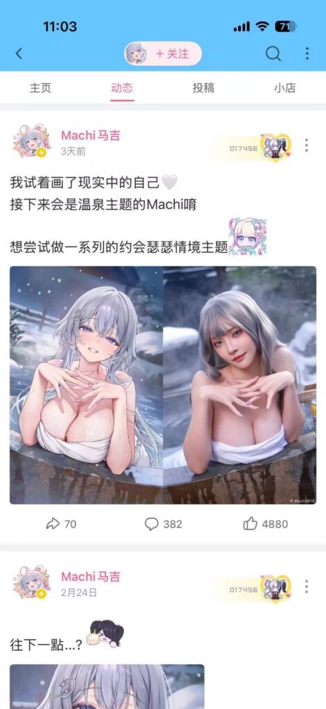 该文章由91吃瓜发布,转载请注明来源并附上原文链接: B站30万粉丝高人气超大杯画师Machi马吉官宣下海全果写真外流
