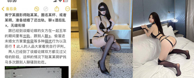 该文章由91吃瓜发布,转载请注明来源并附上原文链接: 实锤南宁摄影圈渣男陆某订婚出轨长期搞无缝衔接