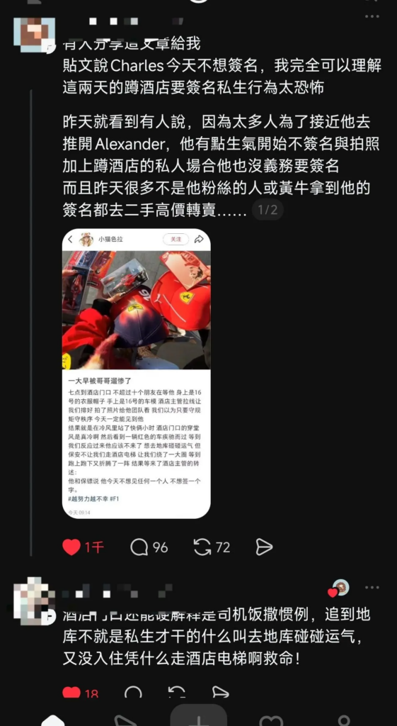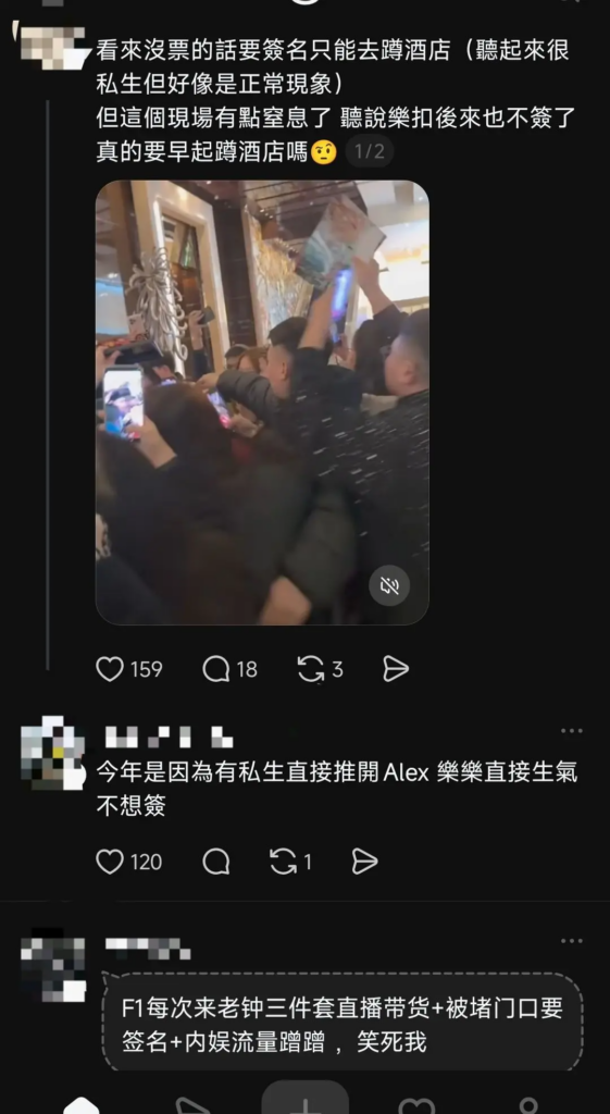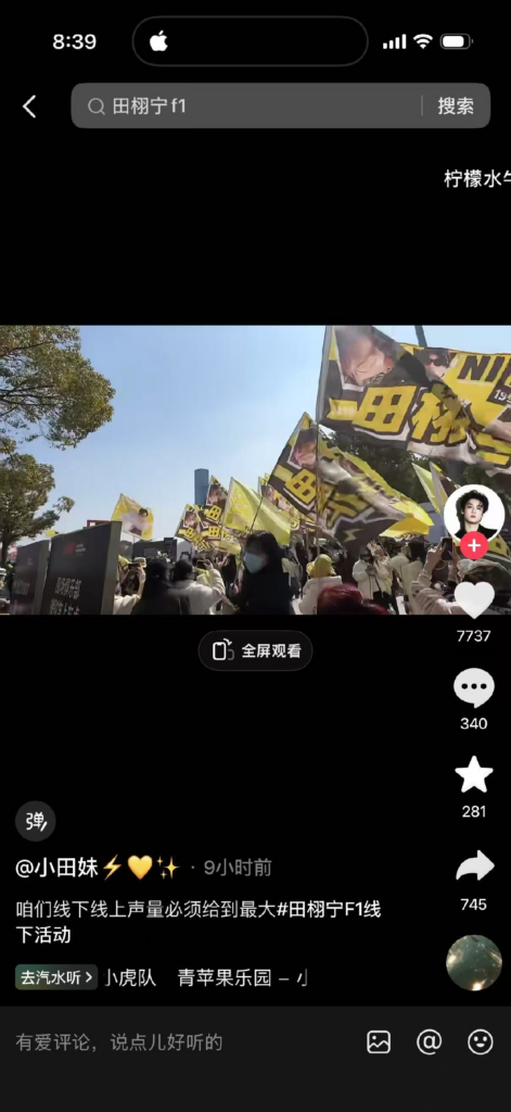 该文章由91吃瓜发布,转载请注明来源并附上原文链接: F1上海站乱象流量明星田栩宁现身赛场粉丝挤兑一票难求