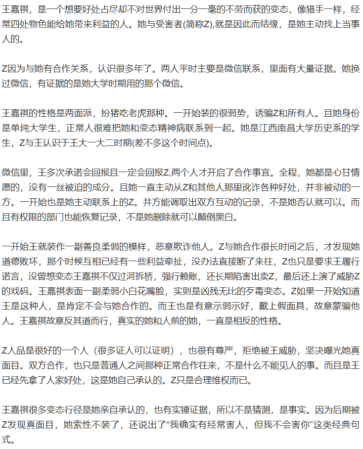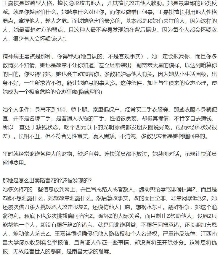 该文章由91吃瓜发布,转载请注明来源并附上原文链接: 实锤江西南昌大学第一毒妇历史系王嘉祺诬告强x敲诈