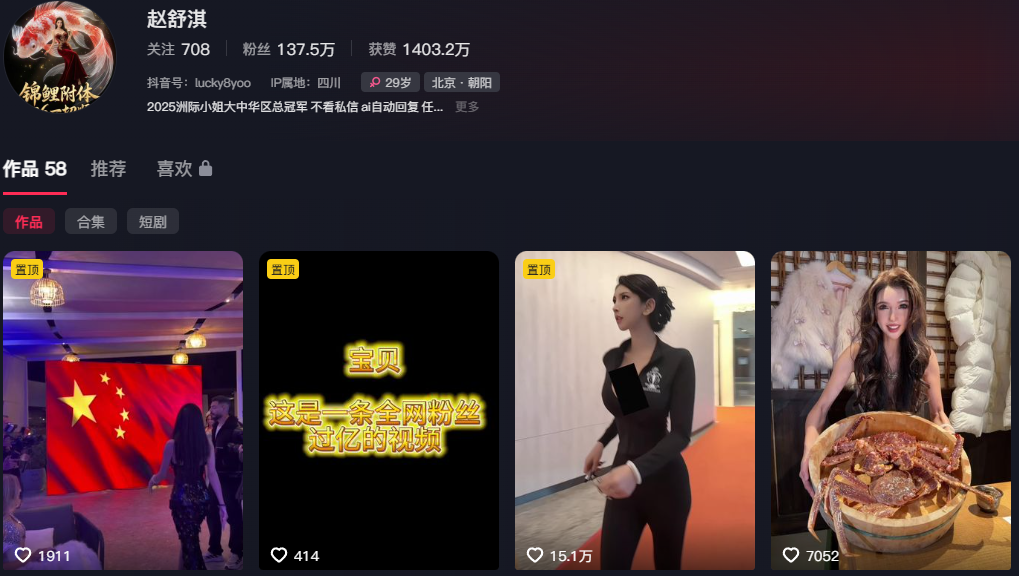138万粉丝抖音超模赵舒淇塌房极速之夜一穿四
