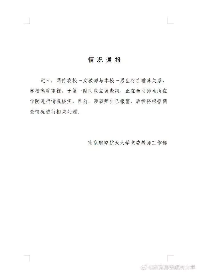 该文章由91吃瓜发布,转载请注明来源并附上原文链接: 南京航空航天大学劲爆大瓜44岁女教授官宣22岁男大