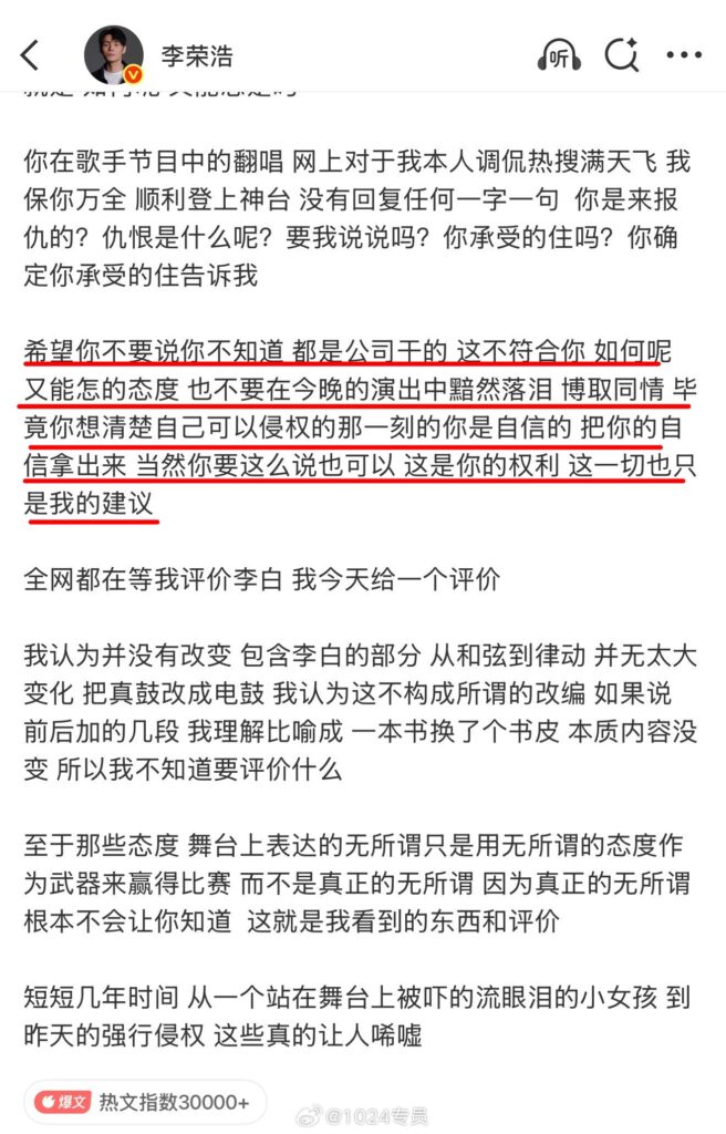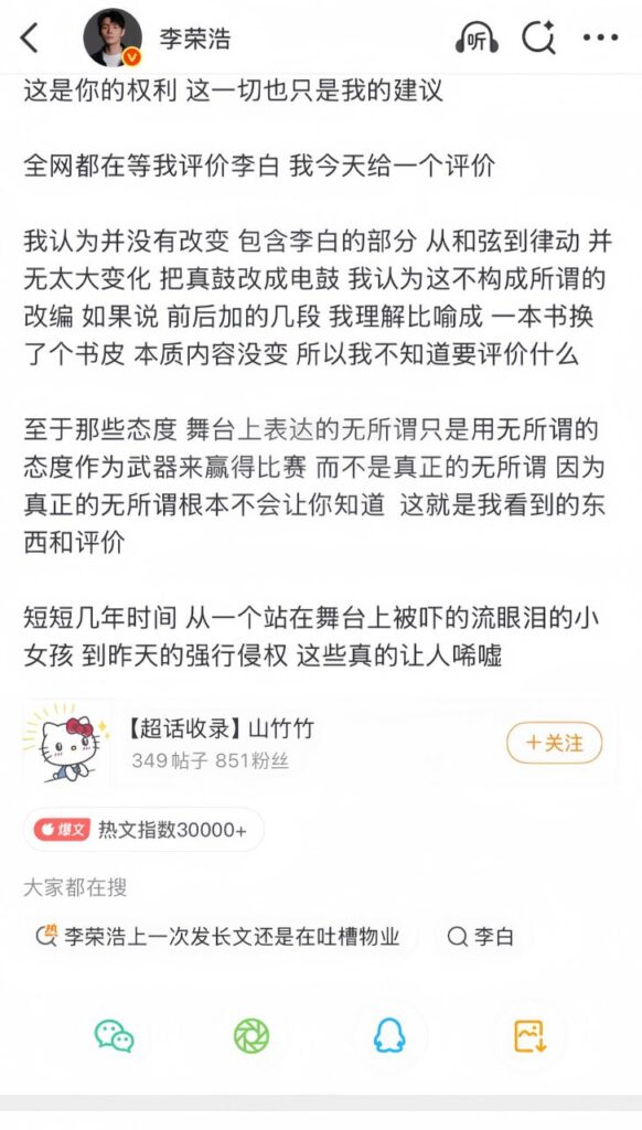 李荣浩长文开怼