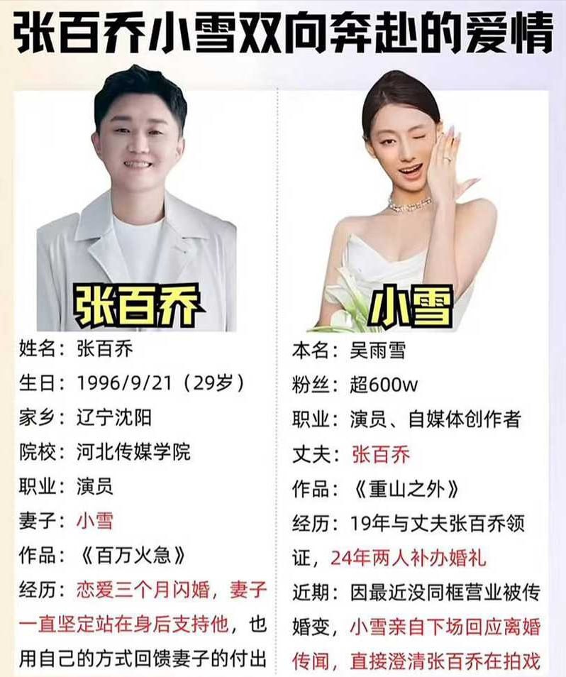 内娱模范夫妻张百乔小雪曝瓜网传小雪遭受家暴照片流传
